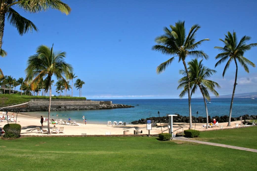 The Mauna Lani Beach Club is located on Maka’iwa Bay at the Southern end of the Mauna Lani area. The beach itself features soft, white sand that's perfect for sunbathing and building sandcastles. The calm waters in the cove are ideal for swimming and experiencing the excellent snorkeling the area has to offer.